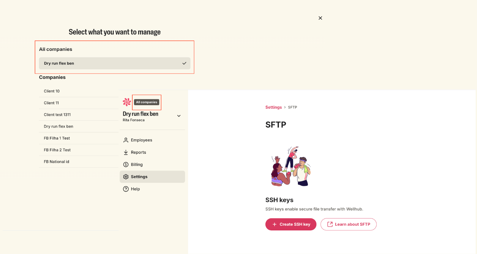 Through Wellhub's SFTP Server, you can perform certain operations for a specific company, or for all your managed companies at the same time.